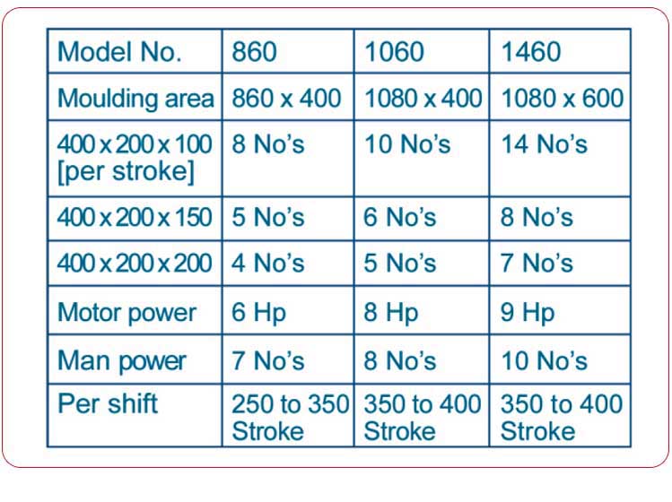 Hollow block machine is offer in different models such as single vibrator model, double vibrator model and triple vibrator model.